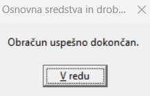 Po zaključku obračuna se nam izpiše obvestilo, da je obračun uspešno dokončan.