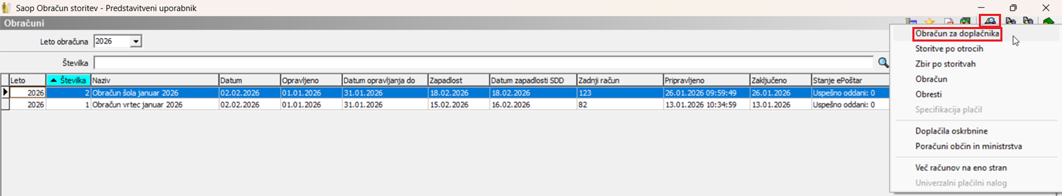 Sedaj nam preostane še priprava računa za doplačnika, ki plačuje del storitev otrokom, učencem, dijakom, itd.