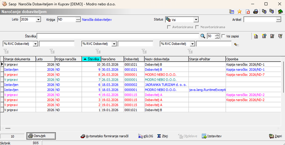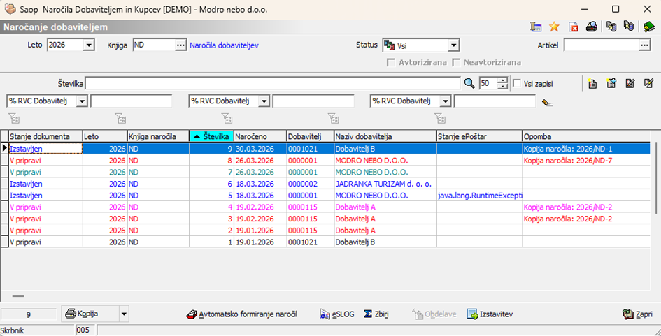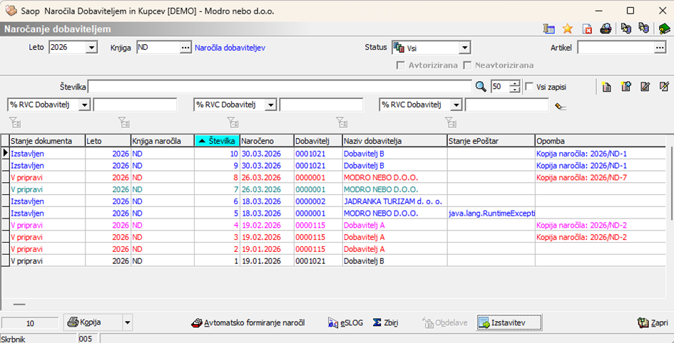 V nadaljevanju so opisani načini izstavljanja naročil dobaviteljem.