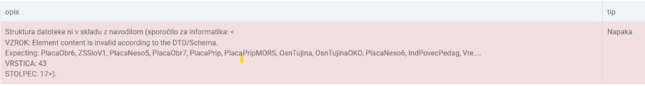 Trenutno se pri oddaji podatkov običajno izpiše naslednja napaka: