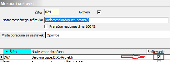 Vključitev nove vrste obračuna v mesečne seštevke OBVEZNO Potrdimo.