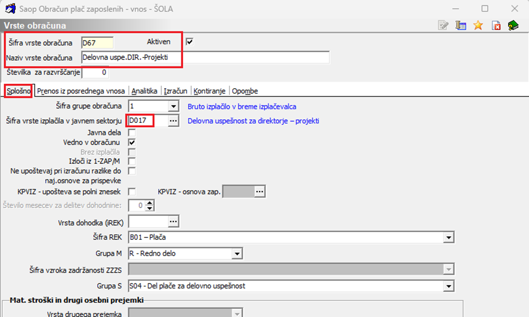 Dodajanje nove vrste obračuna npr. D017 – Delovna uspešnost za direktorje - projekti