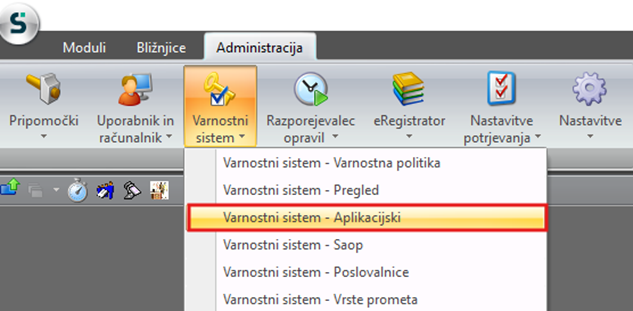 Za omogočanje funkcionalnosti pregleda revizijske sledi mora skrbnik operaterju dodeliti ustrezno pravico v aplikacijskem varnostnem sistemu.