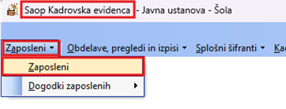 Dostop do revizijske sledi zaposlenih se nahaja v šifrantu zaposlenih, do katerega dostopamo iz naslednjih modulov: