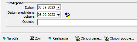 Nato kliknemo na gumb Prenos iz vrstice naročila …