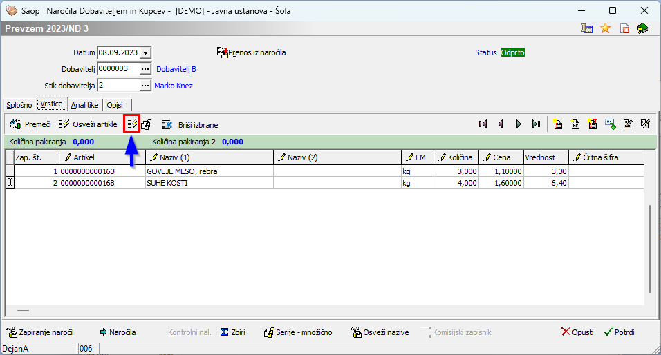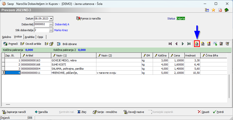 Označimo artikel kliknemo gumb Izberi, nato na Knjiži in Zapri