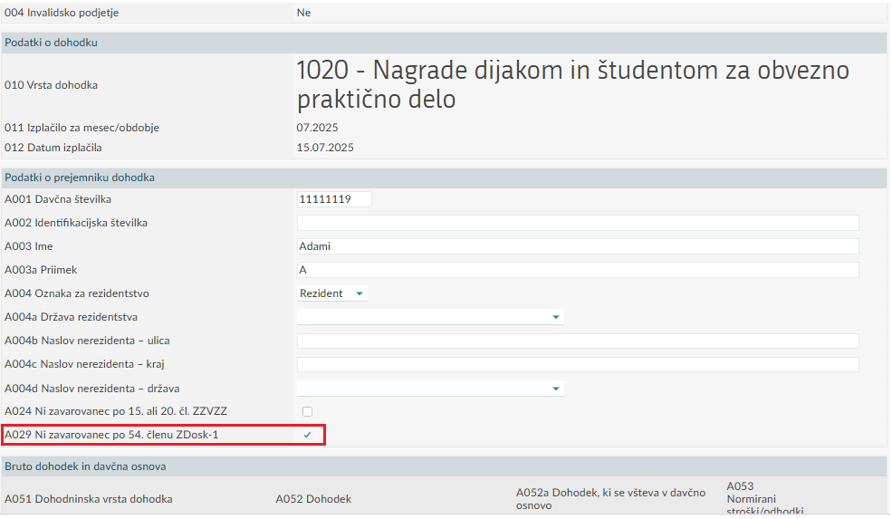 Primer: Prejemnik dohodka iz drugega pravnega razmerja je dopolnil starost 18 let dne 20.7.2025