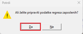Postavite se npr. na prvega zaposlenega, kliknete na gumb Dodatno…Priprava regresa.