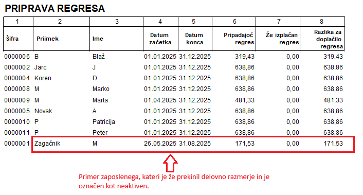 V kolikor želite, da vam program izračuna zneske zimskega regresa tudi za osebe, ki niso več zaposlene pri vas in jih imate označene kot neaktivne, potem izberite dodatno možnost Priprava tudi za neaktivne zaposlene z datumom prekinitve v letu obračuna.