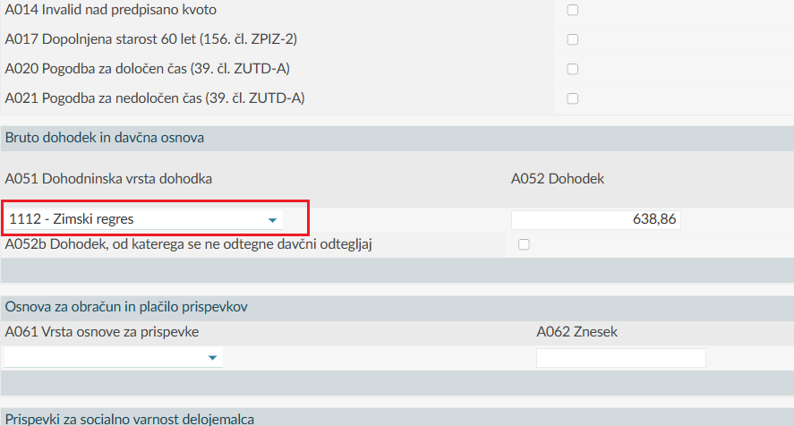 Na ta način se vam pri obračunu Zimskega regresa prispevki in dohodnina ne bodo obračunali (v ozadju se ne izvajajo dodatne kontrole).